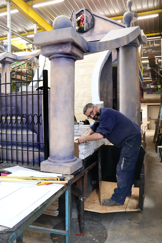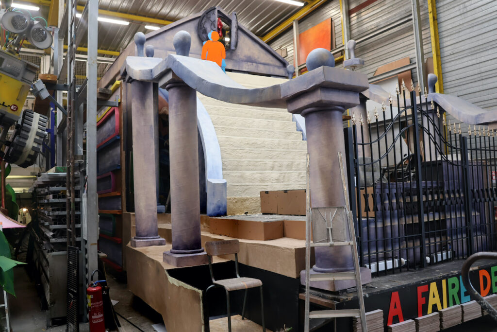 Ce n’est pas un poisson d’avril… Le 5 mars 1967, pour la 50e Mi-Carême de Cholet, le char des reines présentait déjà les colonnes et l’escalier que System’D a bâti pour le 107e carnaval.