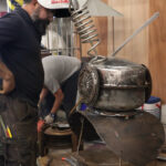 Dans la nuit du 10 au 11 mars 2023, nuit de la soudure, les carnavaliers de Cholet auxquels s’étaient joints les carnavaliers de Saint-Christophe-du-bois, ont découpé et soudé toutes sortes de morceaux de métal. Ils ont fait éclore de leurs mains des êtres et objets fantastiques remontés des fonds marins.