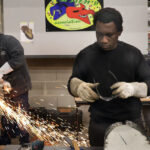 Alors que le jour se levait le 11 mars, les œuvres réalisées prenaient place dans le hall d’exposition, alors que quelques irréductibles continuaient de ferrailler.