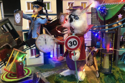 C’était le jour des portes ouvertes : la fête dans la ville miniature. Au passage, et avant de défiler, la maquette s’est décoiffée de son sablier pour se recoiffer du tac tac d’un métronome.