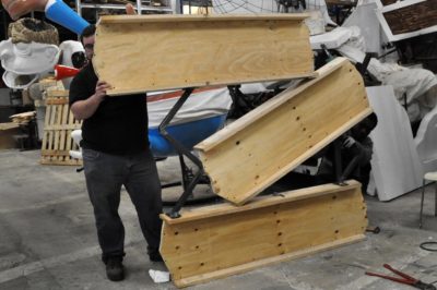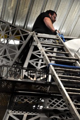 À la tombée de la nuit, les constructeurs ne s’enchaînent pas seulement au bardage de leur atelier… Depuis septembre 2018, ils enchaînent des soirées et parfois même des moitiés de nuit et des jours d’une grande activité pour élaborer ce monde presque pas r’fait auquel ils apportent tous leurs soins, plus particulièrement les mardis et vendredis soirs.