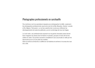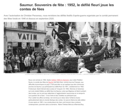 Les récits complets des années 1946 à 1952 sont disponibles aux Archives municipales de Saumur ou sur demande à Christian. C’est gratuit. Les années 1953 à 1962 sont en cours de « reconstitution ».