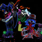 Plus tard, le dernier char, avec P’tit Claude qui ferme la marche, est suivi d’une foule immense qui tente d’atteindre la place pour faire son marché de lumières.
