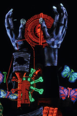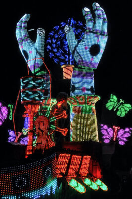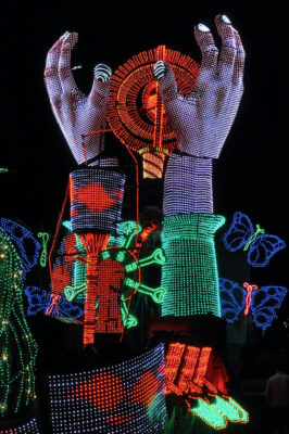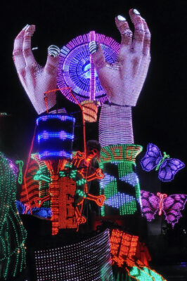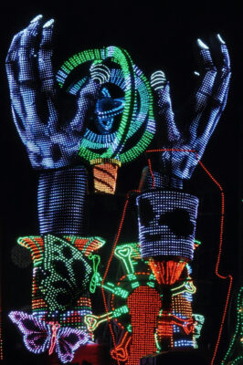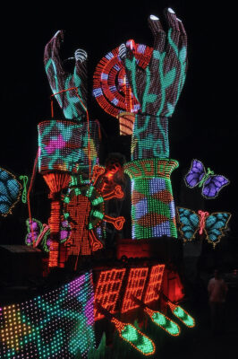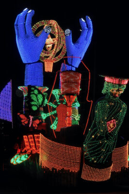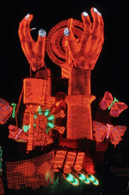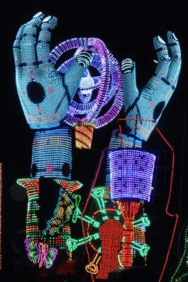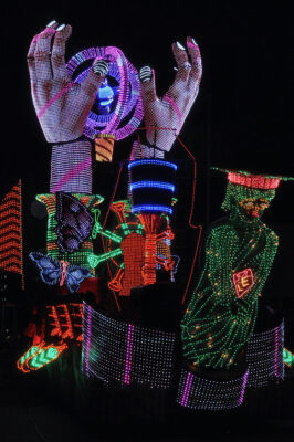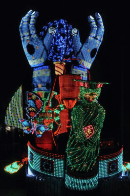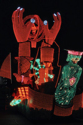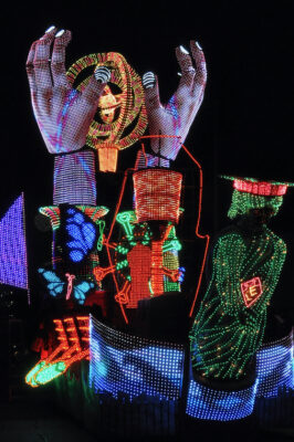Les LEDs sur les chars, ce n’est pas seulement un changement technique, c’est un changement dans la façon de penser  et d’imaginer l’éclairage des chars. Désormais, en plus de l’illumination traditionnelle, les chars présentent aussi d’immenses tableaux lumineux susceptibles de raconter des histoires.