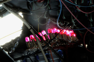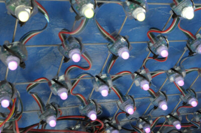 Entre le lundi 2 mai et le samedi 7 mai, c’était donc l’installation des kits couverts d’ampoules qu’il faut raccorder aux transformateurs. Le vendredi soir 6 mai, c’était l’heure des essais dont voici quelques exemples.