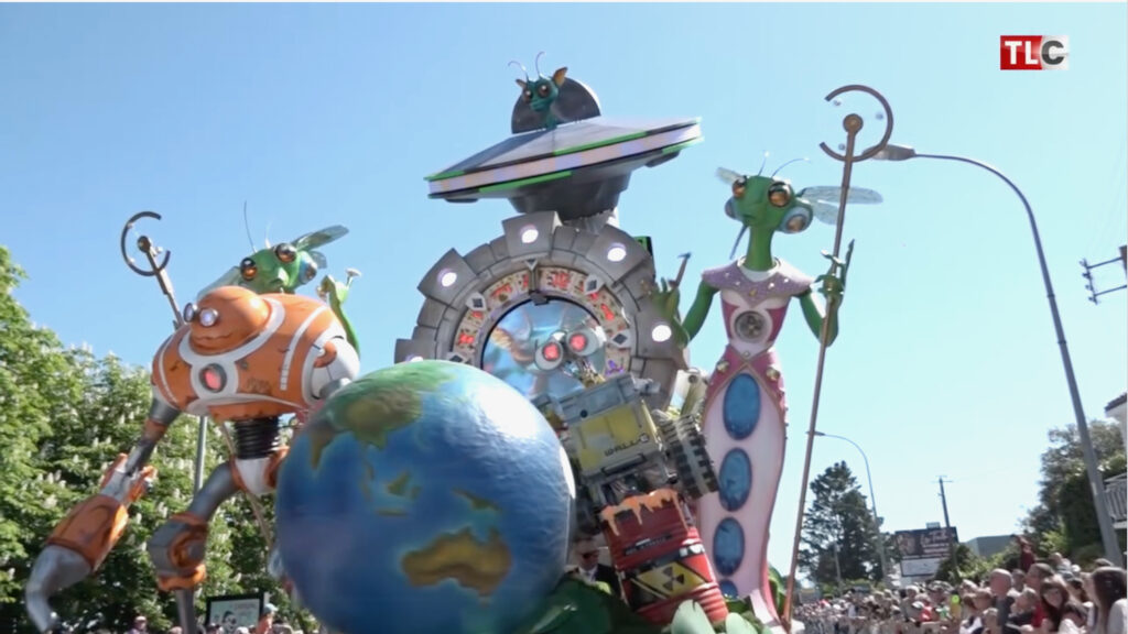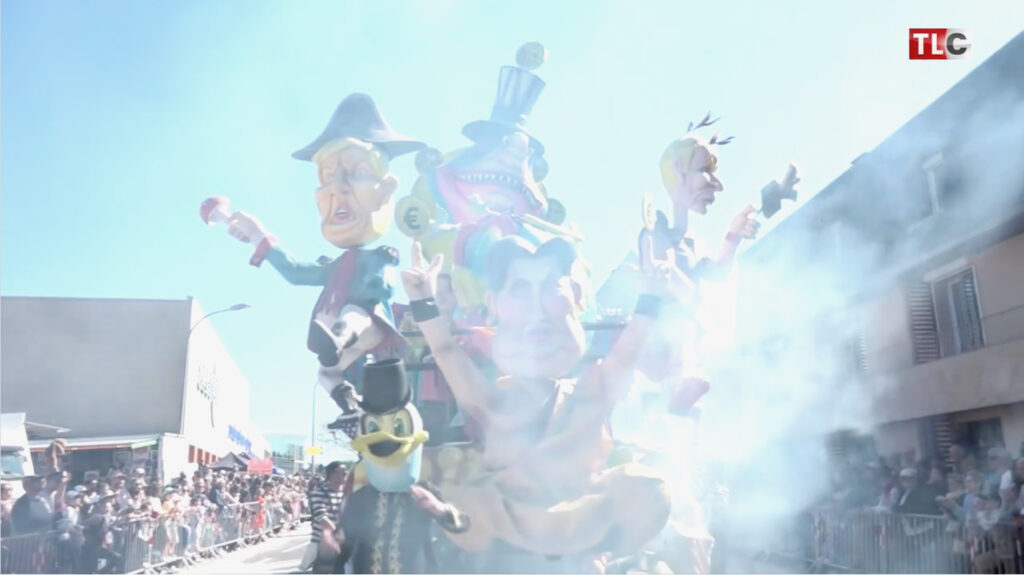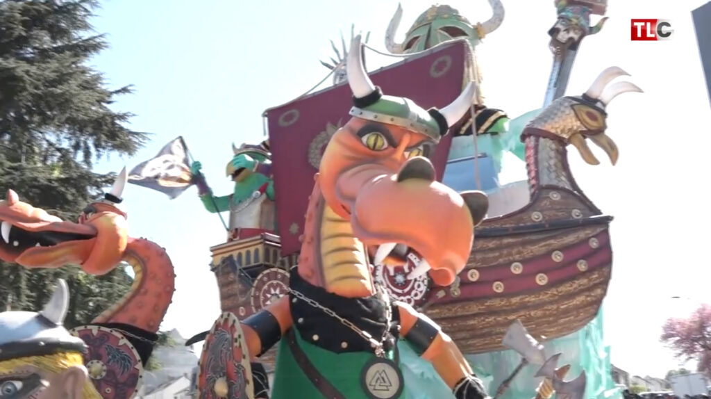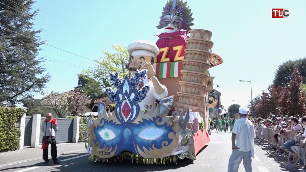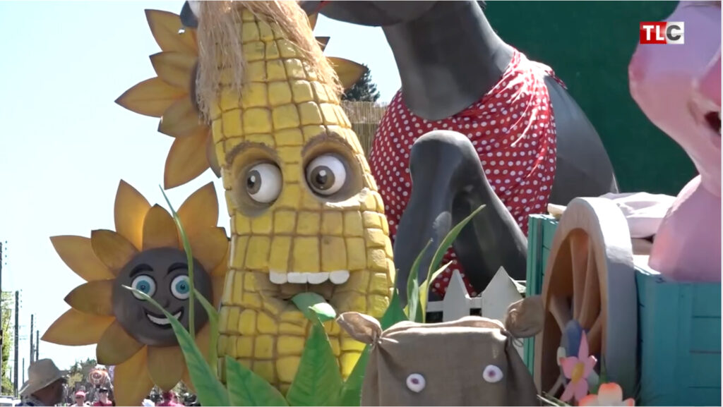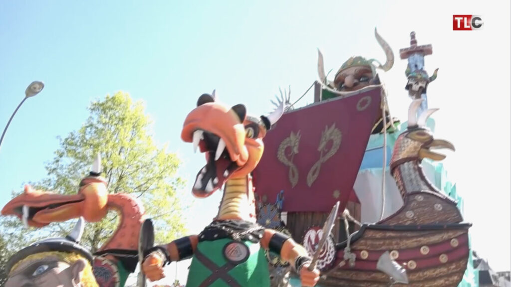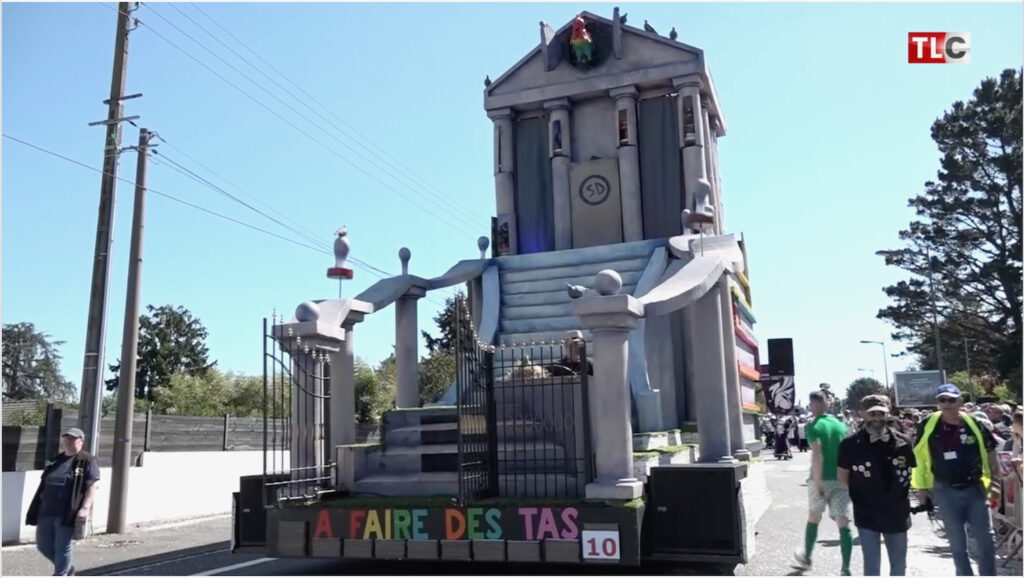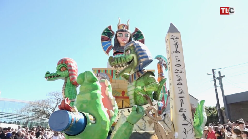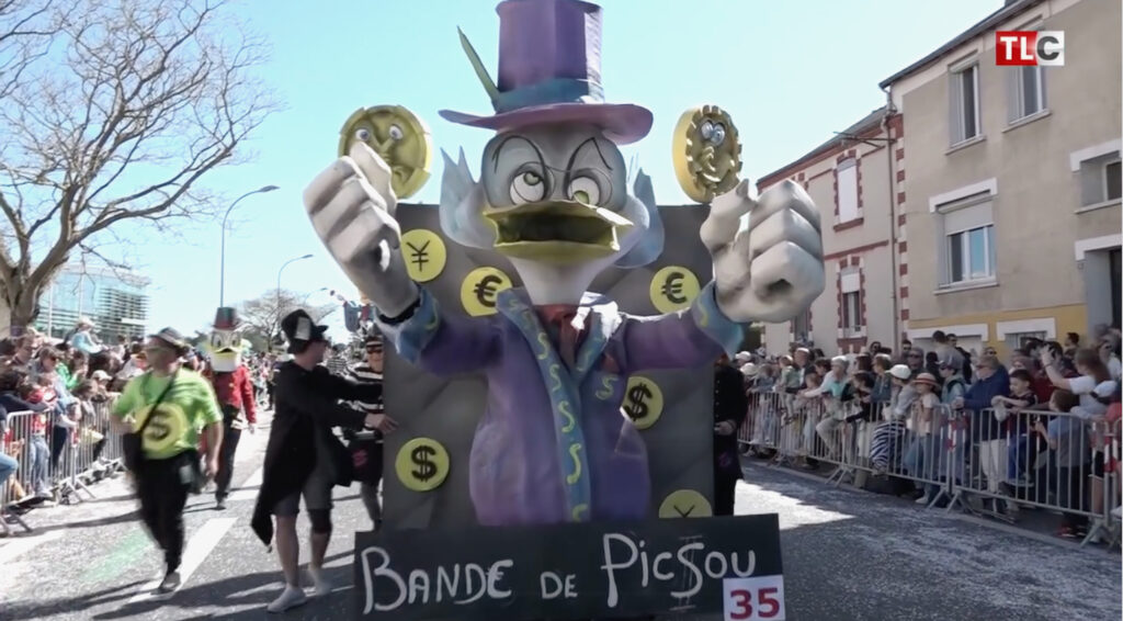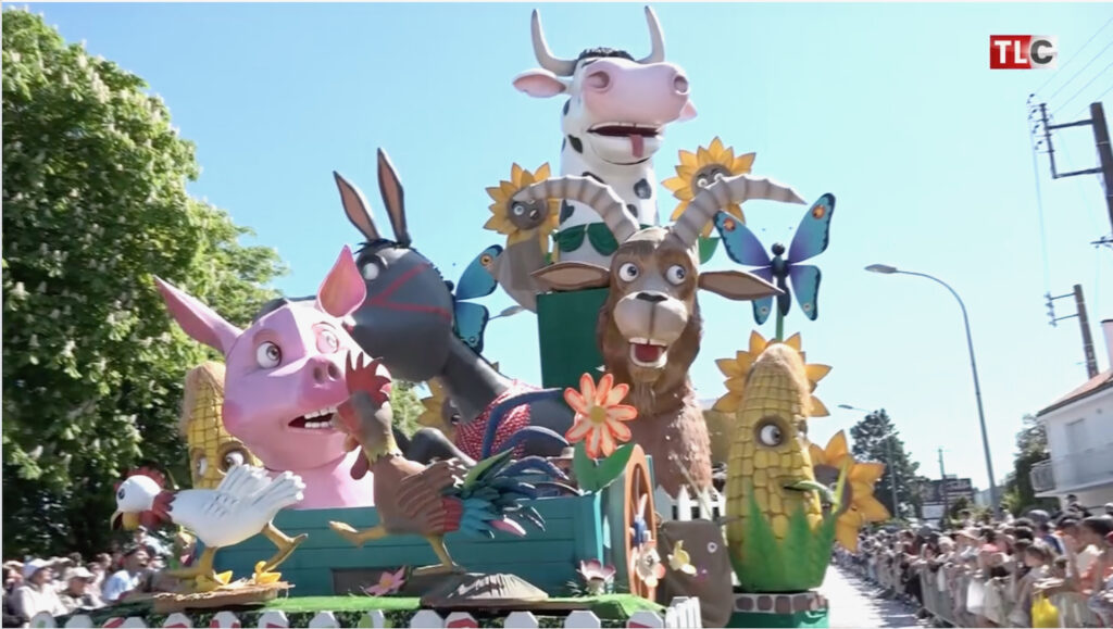 Dimanche 19 avril 2026 – Pour la première fois dans l’histoire du carnaval de Cholet, les ambassadrices, Ayllanie Zaoiedine, Tess Debierre, Noélie Pasquier, toujours privées de char, participent à leur seconde année carnavalesque, un peu serrées pour saluer le public dans la voiture qui les mène – même pas une voiture française…