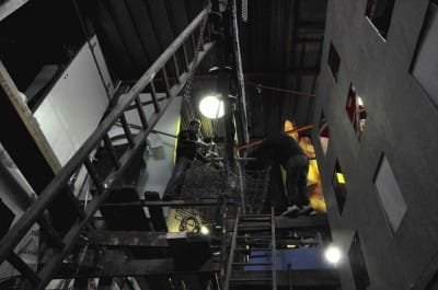 On se croirait sur les vergues d’un mât de navire ou dans les cintres, au-dessus d’une scène de théâtre. Dans tous les cas, il faut avoir le pied marin…