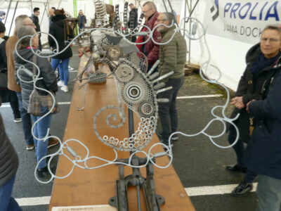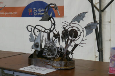 Conçues et réalisées dans la nuit du 10 au 11 mars, les œuvres d’art des carnavaliers ont séduit le public. Hippocampes, poisson-scie, épave, méduses… De morceaux de métal éparpillés et brisés, les carnavaliers ont su habilement tirer des merveilles vendues dimanche aux enchères au profit de  Loisirs Pluriel . Même la rouille participe à l’esthétique.