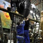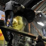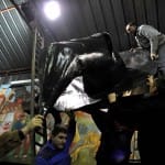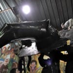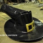 Et comme il fait toujours aussi froid dans le hangar, et qu’on ne tient pas à ce que notre sorcière soit malade ! (imaginez ce que ça nous coûterait, mieux vaut une couverture chapeau qu’une couverture sociale)… par dessus sa chevelure si seyante, on lui enfoncé son chapeau sur la tête, ce qui n’a pas été une mince affaire !