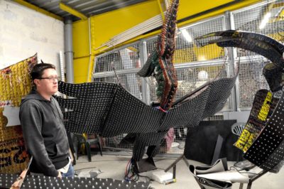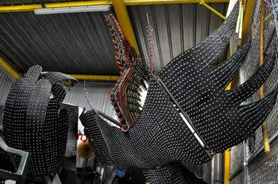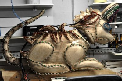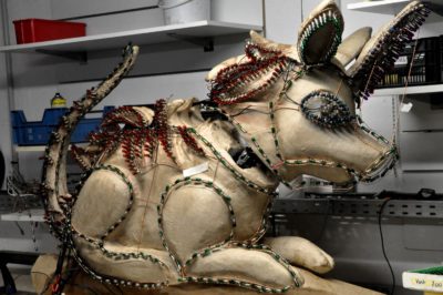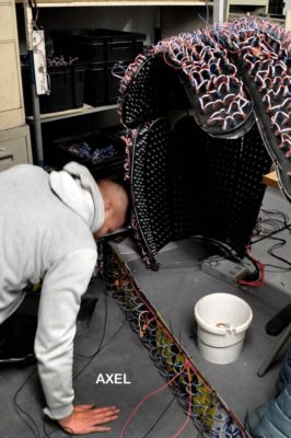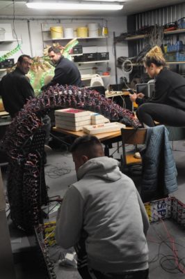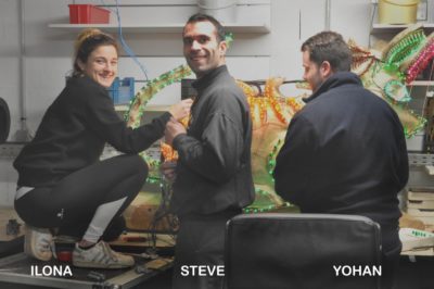 Les électriciens sont les costumiers du char pour la nuit. Ils œuvrent juste en face du char, de l’autre côté de l’allée du temple des carnavaliers.