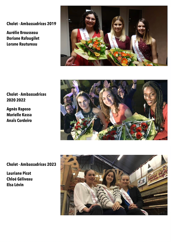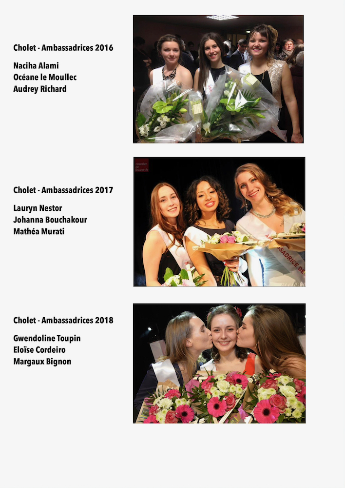 4 Mars 2016 : À 18 ans, Naciha Alami est élue ambassadrice de Cholet au côté d’Océane Le Moullec et Audrey Richard. Elle inscrit son nom sur la prestigieuse liste des ambassadrices 33 ans après sa maman, Brigitte Draperon. C’était pour la 66e Mi-Carême, le 10 Avril 1983, la dernière Mi-Carême avec les deux défilés dans la même journée.