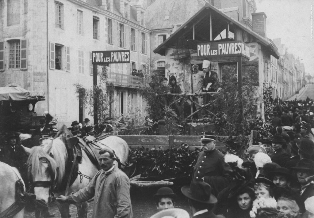 À l’initiative des carnavaliers « le char des pauvres », « le char de la charité » (à Saumur « le char de la générosité ») ont longtemps participé aux mi-carêmes, carnavals et défilé fleuris. Mais à Cholet, cette tradition est tombée dans l’oubli…