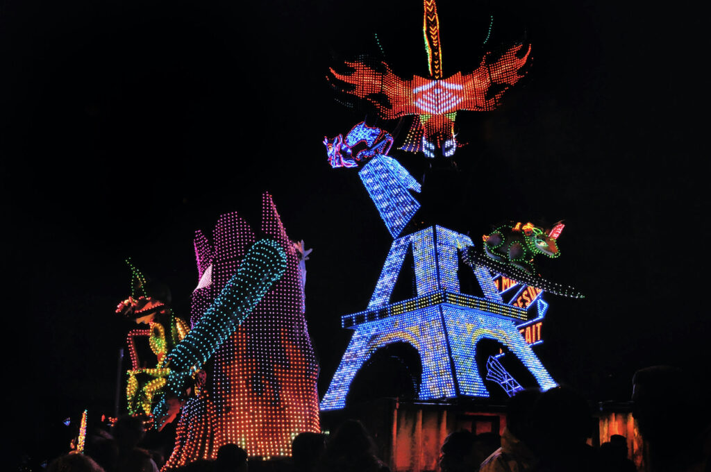Une tour Eiffel sur un char, une miss en fer, n’est pas une mince à faire, pardon, ce n’est pas une mince affaire, surtout s’il faut lui donner des aspects qui sortent de l’ordinaire des modèles proposés par les marchands de souvenirs « made in China ». Mais les carnavaliers ont une longue expérience des tours Eiffel et de ses détours.