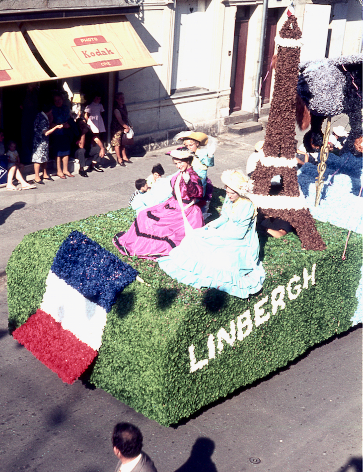 - 1er juillet 1957 « Le cinéma », char : « Un Américain à Paris », réalisation du quartier Gare, Croix-Verte.