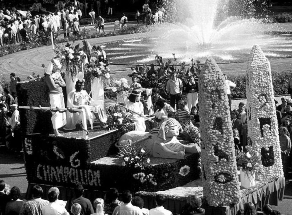 - Défilé fleuri de Saumur, 20 au 23 juin 1986, le quartier Robert-Amy, Violettes, Chemin Vert présente le char : L’Égypte.