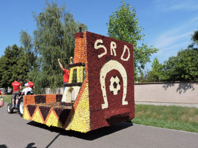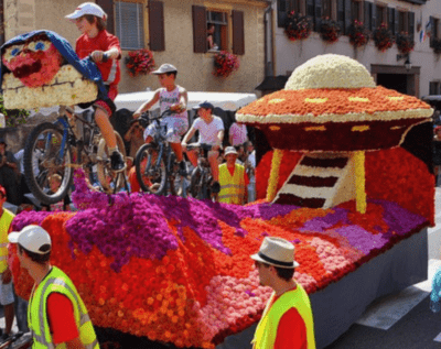 Pendant la dégustation, des courses d’adresse à vélo et de caisses à savon. Là aussi, l’apothéose, c’est un grand défilé avec des chars fleuris.