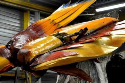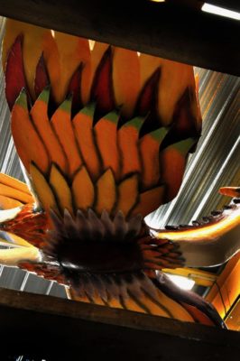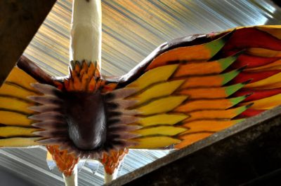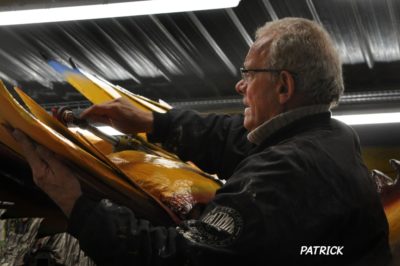 Pour une fois, le pistolet contre un oiseau est bienvenu quand il s’agit de lui donner des couleurs à faire pâlir le ciel. Il ne s’agit pas de repeindre le plafond le plafond de la Chapelle Sixtine, mais c’est tout comme. Il faut une habileté d’acrobate pour colorier le géant juste en-dessous du toit et au-dessus du vide. C’est là que Patrick excelle.