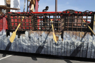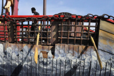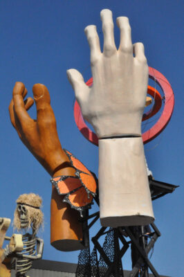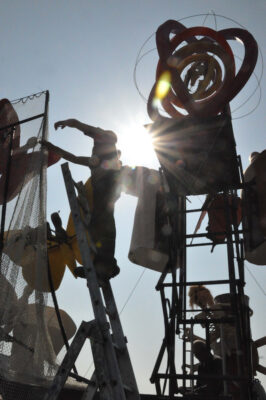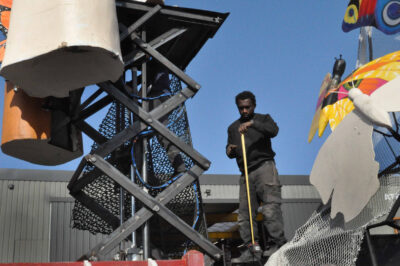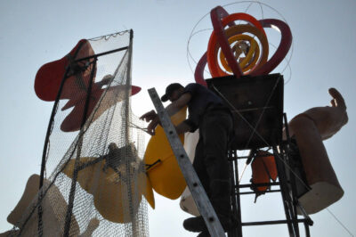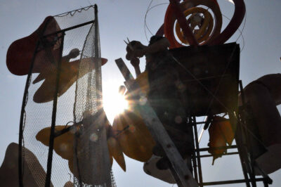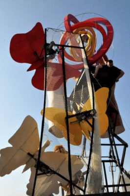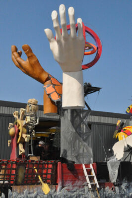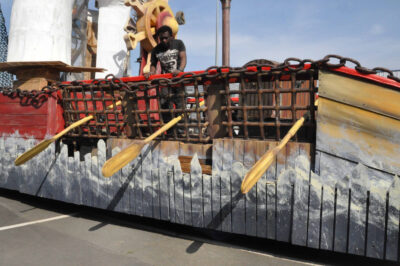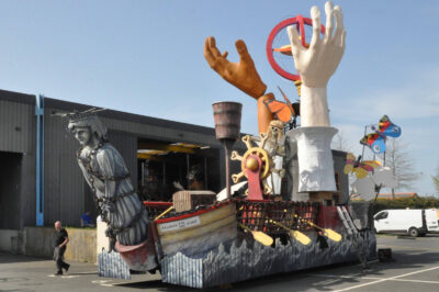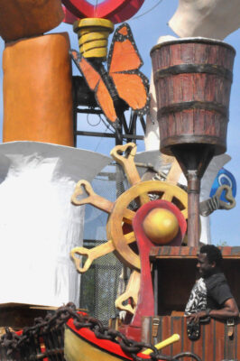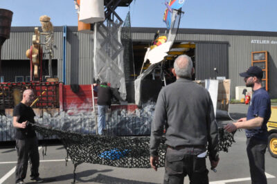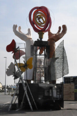 Pendant ce temps, toute l’équipe s’affaire à mettre le char dans la configuration la plus proche de celle qu’elle sera lors du carnaval (compte tenu des finitions qu’il reste à réaliser). Les papillons, après avoir échappé aux araignées de l’atelier, rêvent eux aussi de s’envoler dans le ciel bleu.