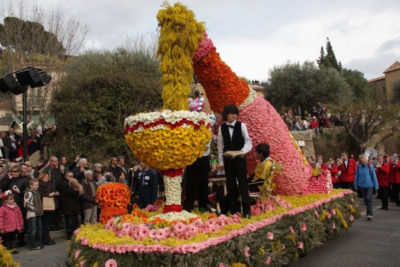 En 1920, pour fêter le printemps, des ânes et des mulets furent invités à tirer des charrettes fleuries pour fêter le printemps. Le fleurissement des charrettes venait directement des collines qui regorgeaient de mimosas, de bruyères blanches et autres feuillages sauvages. Puis s’y ajoutèrent les soucis, anémones marguerites, gerbéras, œillets…