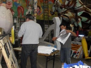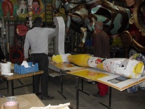 À la découverte des Saumurois de Saint-Lambert-des-Levées travaillant sur le char du « Festin de Gargantua ».