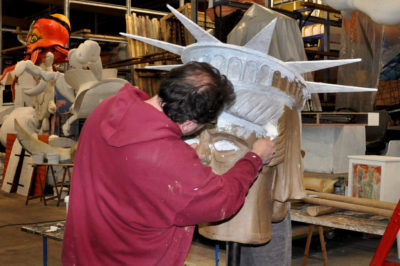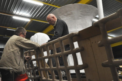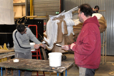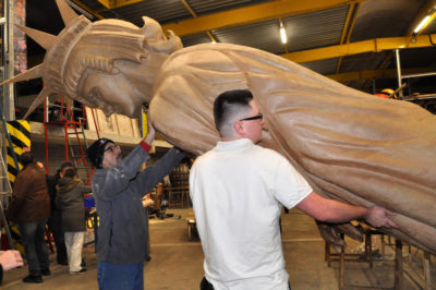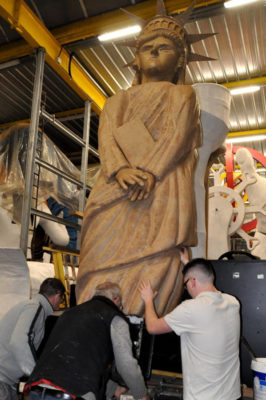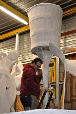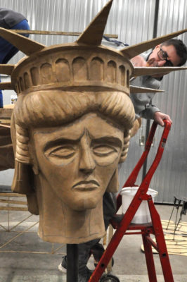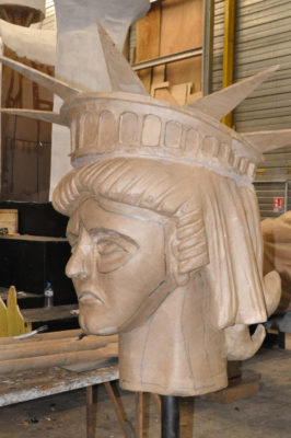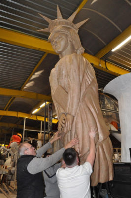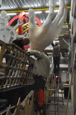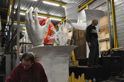 Ce sont les ultimes photos du char et des accessoires prises par Bernard, juste avant la fermeture des portes de l’atelier. Depuis ce samedi 15 mars où le carnaval 2020 a été définitivement annulé, la Liberté s’est endormie comme la Belle au Bois dormant. Un jour, son prince viendra…