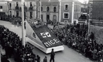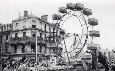 Eh bien, tant pis pour l’évêque, les chars de la mi-carême 1954 proposent un beau voyage à qui sait les apprécier, dont un clin d’œil à Nice où s’était rendue une délégation de carnavaliers choletais. Un voyage à Vienne pour danser la valse sur la grande roue…
